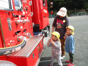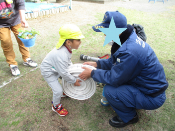 消防署の方にいろいろ教えてもらって、嬉しかったねfrown