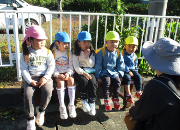 「何色のバスかな?」と、バスが来るのが待ち遠しかったこどもたち