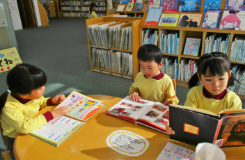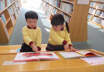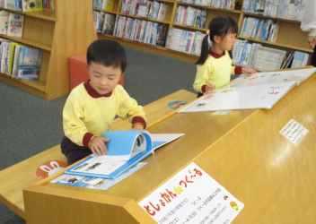 図書館の方に読み聞かせをしていただいた後で、自分が選んだ絵本をたくさん見てきましたfrown
