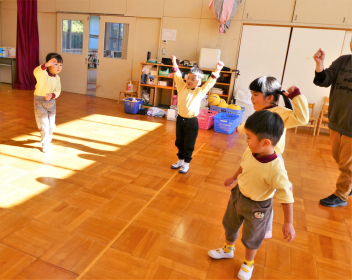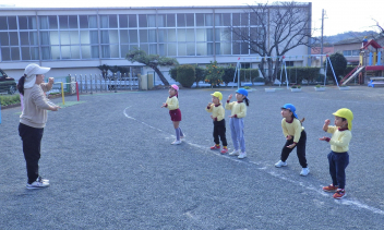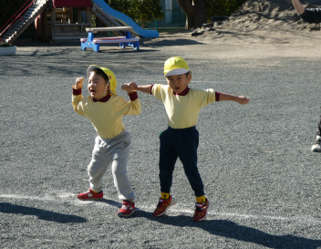 準備体操で、声を出したり体を伸ばしたりが、自信をもってできるようになってきましたねfrown