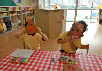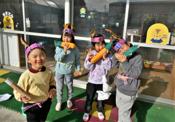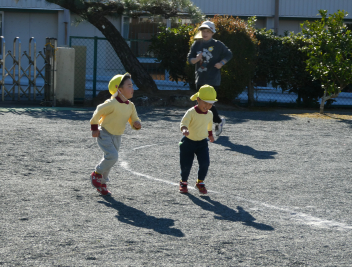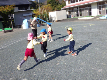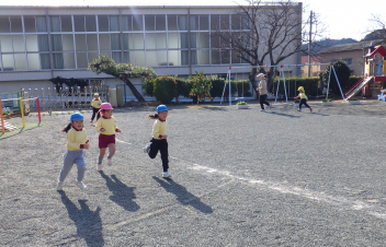 造形教室の後は、言葉のやりとりや逃げる・捕まえるのスリル感などの遊びの面白さを感じながら今日も鬼ごっこを楽しんでいましたsad