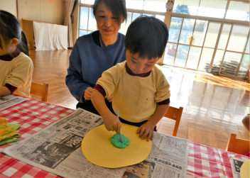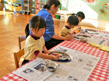 粘土に絵の具を混ぜて色付けし、形を整えたら・・・