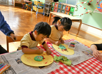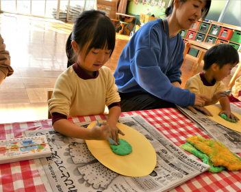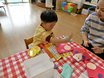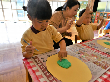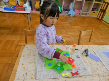 クラスでは、折り紙やスタンプでクリスマスやお正月の製作をしていました