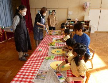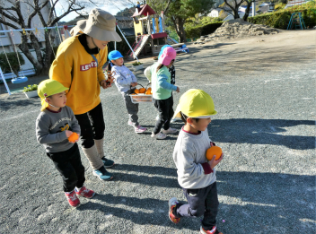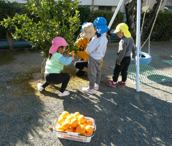 出来上がりを待っている間には、園庭のミカンの収穫もしました