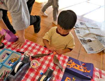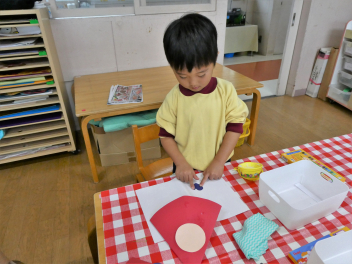 糊やはさみ、クレパスやボンドなどの扱い方が身につき始めてきています
