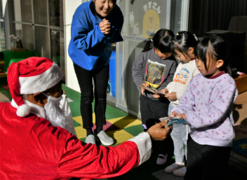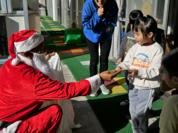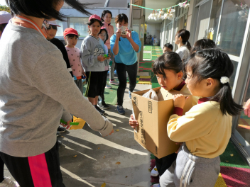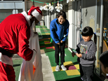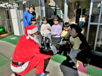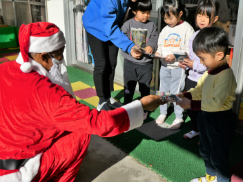 幼稚園にちょっと早めのサンタさんが、プレゼントを持って来てくれました