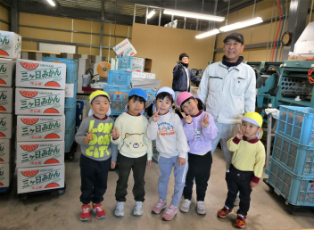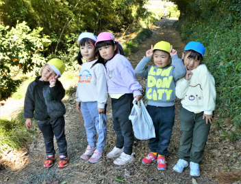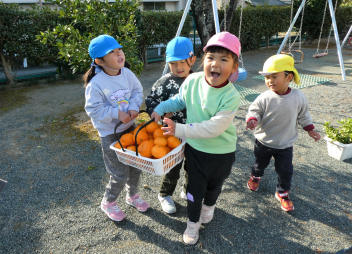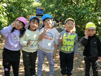今日は、幼稚園のお友達の家の近くに散歩に出掛け、みかん畑やみかんの選果する様子を見せてもらいましたsad