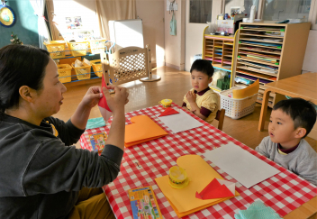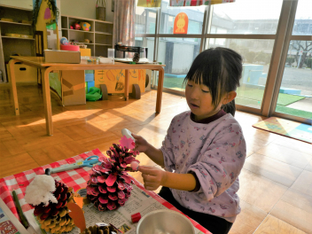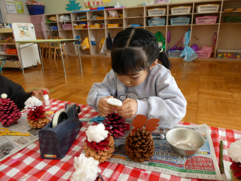 今日も、クリスマスの飾りづくりの続きをしていたこどもたちsad
