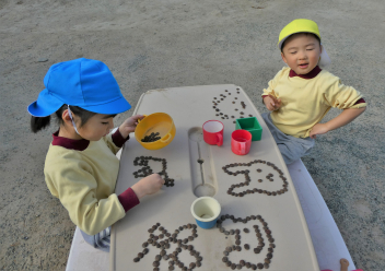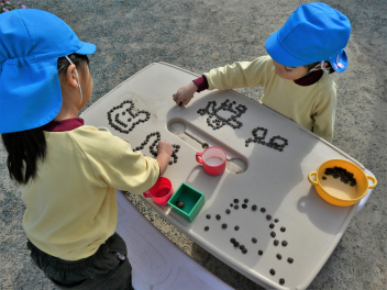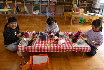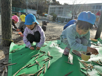食後には、拾ってきた自然物を使って遊びましたsmiley
