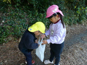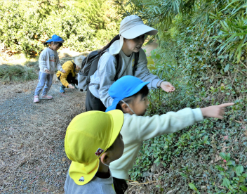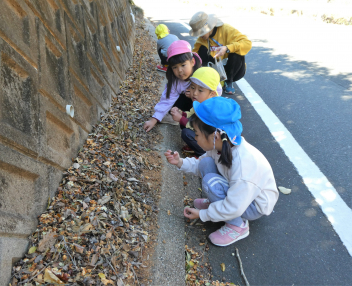 道中では、ドングリやお茶の実、木の実、色づいた木々などの様々な自然に触れることができました