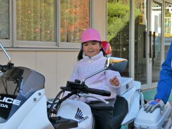 実際に乗せてもらったり、お話を聞いたり・・・警察の方々が優しく接してくれたので、こどもたちには、楽しいひと時となりましたsmiley