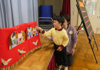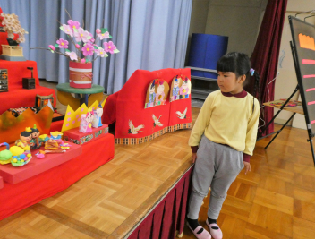 本日お雛様を持ち帰りましたので、作品を見ながら、こどもさんのお話を聞いてみてくださいねlaugh