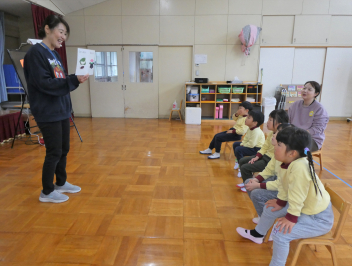 今日は、いろいろなお面が出てくるお話・・・想像を膨らめながら、楽しんでいました
