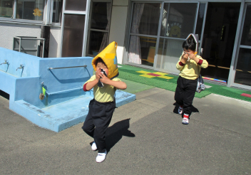 踊りと宝探しとかくれんぼをして、遊びましたfrown