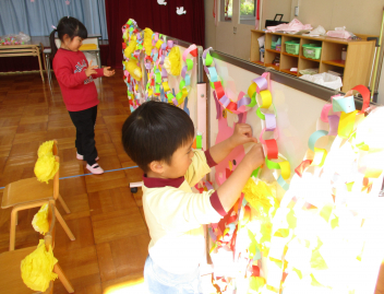 年中・年少さんは、明日のお別れ会の最終準備smiley