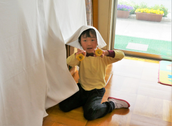 今日だけは、いつも入って遊ばないところもOKとしたところ、自分たちで隠れ場所を必死に探す姿が見られましたsmiley