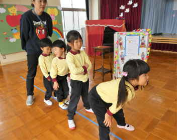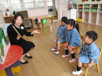 りす組さんでは、先生の話を真剣に落ち着いて聞く姿が見られ、成長が感じられましたsad