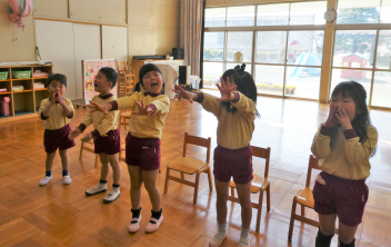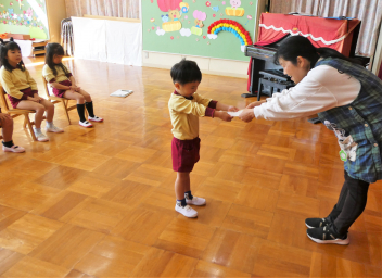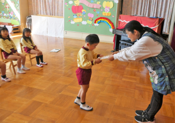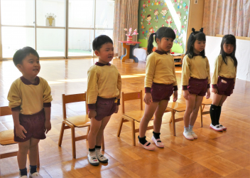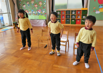 立ったり座ったり、話を聞いたりすることが、落ち着いてできるようになったみんな。
