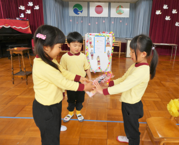 明日は、3月の誕生会と修了式。みんなで、お祝いしてあげようね