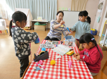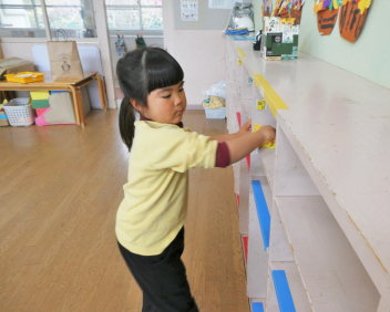 「〇〇したよね」「これ、お家にもっていこう」など遊んだことを思い出したり、部屋がきれいになっていく心地よさを感じたりしながら、最後まで頑張っていましたよfrown