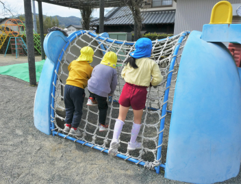 食後のテラスでは、楽しそうにあやとりをしていた年中・年長さんsad