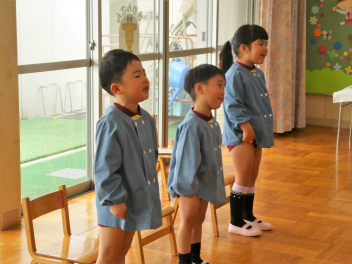 きりん組さんは始めだけ少し緊張した面持ちでしたが、会が進むにつれて、いつも通りの元気な姿が見られていましたwink