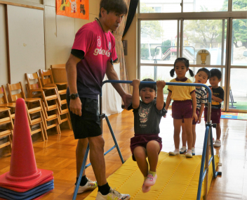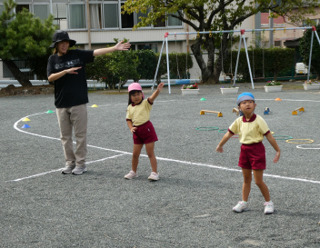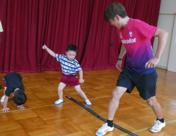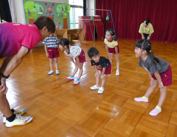 「お願いします!wink」の元気のいい挨拶からスタートし、いろいろな体の動きを楽しく遊びながら、教えていただきました