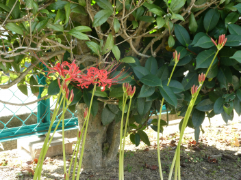 先々週、アスパラガスのようなヒガンバナの芽が出てきたと思ったら、今朝には花が咲いていましたよ