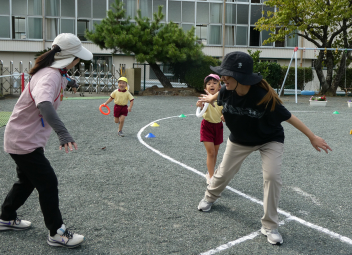 お母さん先生、今日はこども達と一緒にたくさん体を動かして遊んでいただき、ありがとうございましたlaugh