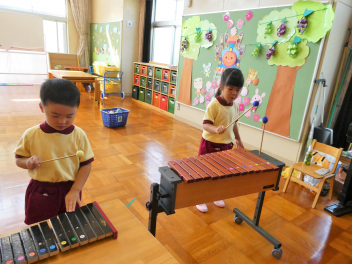 カスタネットやハンドベル、木琴や鉄琴にも挑戦しましたよfrown