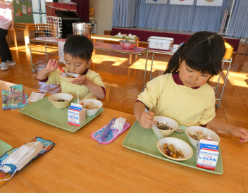 今日もいっぱい遊んだので、給食もたくさん食べられました