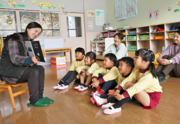 午後には、地域の絵本ボランティア「赤ずきんちゃん」の読み聞かせもありました