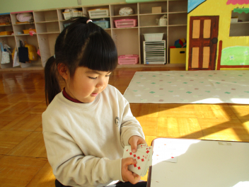 クラスでは、折り紙やスタンプでクリスマスやお正月の製作をしていました