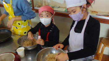 •  はばたき学級では、「地産地消~浜松から広げよう~」をテーマに総合的な学習の時間に取り組んでいます。11月17日は、1学期に施設見学させていただいた鳥居食品の看板商品、ウスターソースを使った調理実習を行いました。