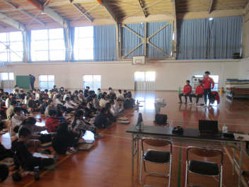 体育館一面を使って、一人当たりのスペースをしっかりとって準備をしました