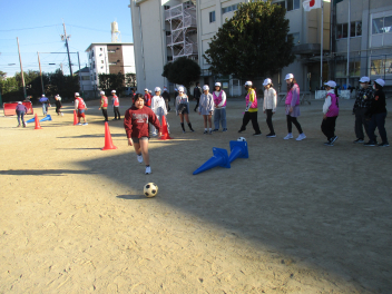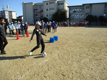 6時間目のサッカー教室では、ドリブルからシュートを打つ練習をしたり、ミニゲームを行ったりして、寒い中でも楽しく体を動かしていました!