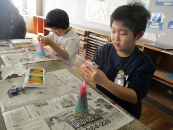 くすのき学級では、図工の学習でクリスマスキャンドル作りをしました