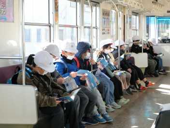 子供たちは、駅や車内の様子をよく見ながら、目を輝かせて学習しました