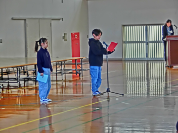 各学年の代表の子供が、1年間に頑張ったことを発表しました。