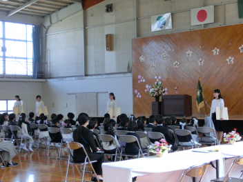 式辞や祝電披露の後、門出の言葉では、感動的な言葉のリレーや「さくら」が美しい歌声で響き渡りました。