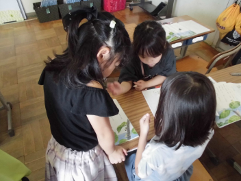 お話の中に出てくる登場人物をまずは自分で探し、その後、友達と意見を交換しましたsad