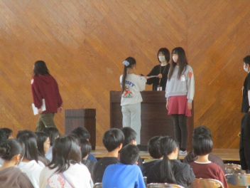 6年生クイズでは、好きな給食や教科などが出題され、全校で楽しみました