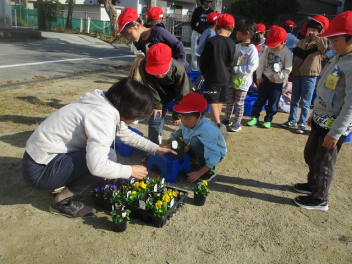 3色のビオラから好きな色を選んで、先生から苗を受け取りました