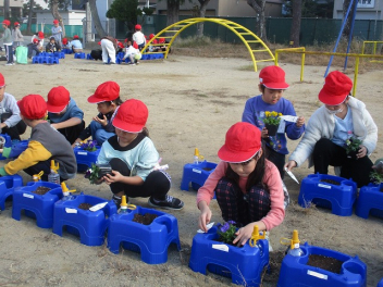 • 1年生が生活科の学習で、ビオラの苗を植えましたsad