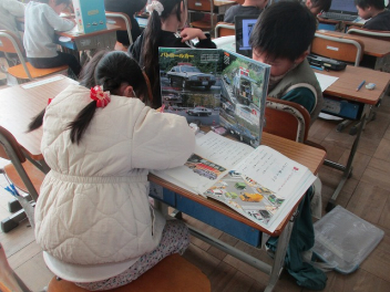 • 1年生が国語で「じどうしゃくらべ」のお話を学習していますsad