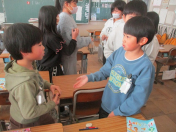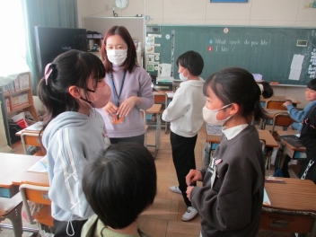 • 4年生の外国語活動では、好きなものを尋ねたり答えたりする学習をしていますsad