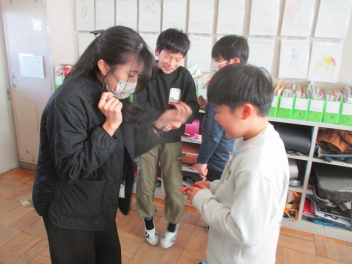 くすのき学級の子供たちが、豆まきをしました