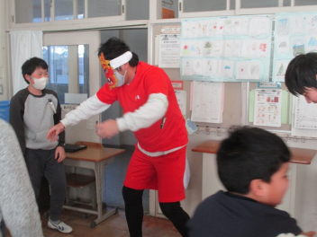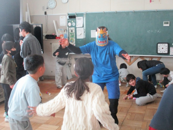 教室に、赤鬼と青鬼がやってきて、子供たちは大騒ぎ