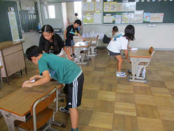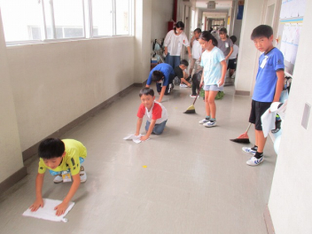 夏休みの間に埃などがたまっていた様子で、子供たちは張り切って校舎をきれいにしていました