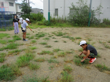 • 1学期の後半から、4年生が自主的に草取りをしていますsad
